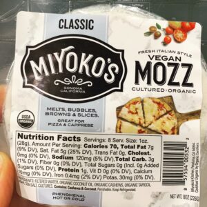 Miyoko’s has this non-dairy mozzarella that actually melts, most vegan cheeses do not do that! Plus, the ingredients are simple and real, and include cashews, btw. I’m telling everyone that cashews are the new cauliflower, ha! Now, Miyoko’s also has an amazing dariy-free butter as well, so keepy an eye out.