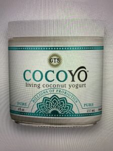 GT’s, the maker of GT’s Kombucha have made a line of dairy-free, no sugar-added, living coconut yogurts. They are literally just coconut milk, coconut water, probiotics, and a little stevia or real fruit or spices in the flavored varieties. It is a tart, tangy yogurt which lets you know it’s alive 🙂 Flavors: raspberry, turmeric ginger, vanilla, and plain.