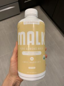 If you are like me and have a sensitive digestive system, you may not be able to tolerate the gums and thickeners that many nut milk products have in them. Boy was I happy to find this baby! Malk has four simple ingredients…that’s it!! Almonds, filtered water, vanilla, and pink salt. It is literally like you made it yourself, thick, creamy, and delicious.