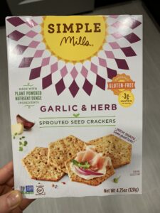 Simple Mills makes some great grain-free products! Not only do they make a line of crackers like these Garlic and Herb flavor but they also make muffin and bread mixes and premade cookies. Their products are made with nut and seed flours and cassava flour. Forget about them tasting like cardboard, they DON’T, I would prefer theses over regular crackers any day!