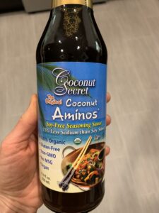 If you follow a Paleo diet you’ll know soy and other legumes aren’t consumed on the diet. Many people struggle digestively with beans and soy, plus, soy is actually a common food allergen/sensitivity for a lot of people. Not only that, most regular soy sauce is made with wheat and soy unless you specifically seek out a gluten-free version. So if you are keeping soy out of your diet here is a perfect alternative, Coconut Aminos by Coconut Secret which tastes pretty much identical to soy sauce.